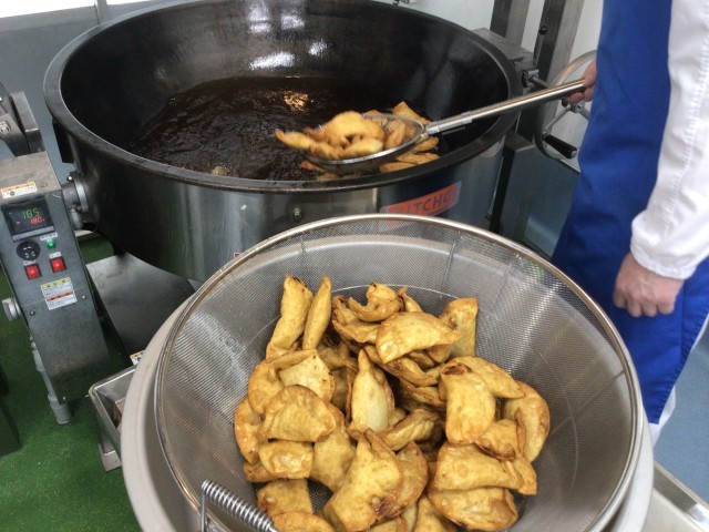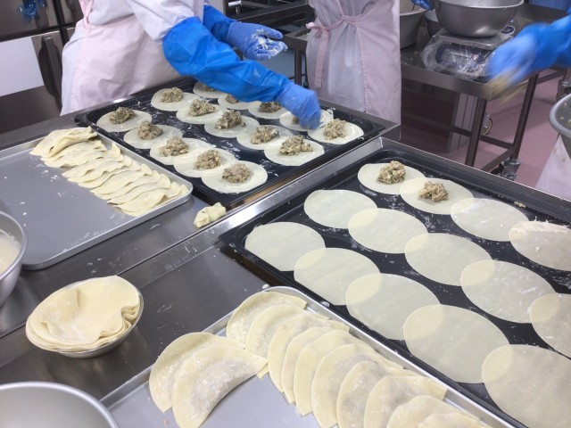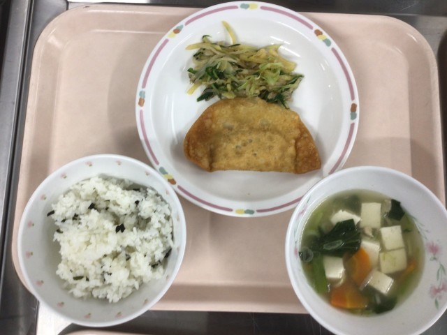 今日の給食は人気メニューのジャンボ餃子です。直径15センチの大きな皮を使っていて、普通の餃子の約3倍の大きさがあります。みんなとてもよく食べていて、残食はほとんどありませんでした。