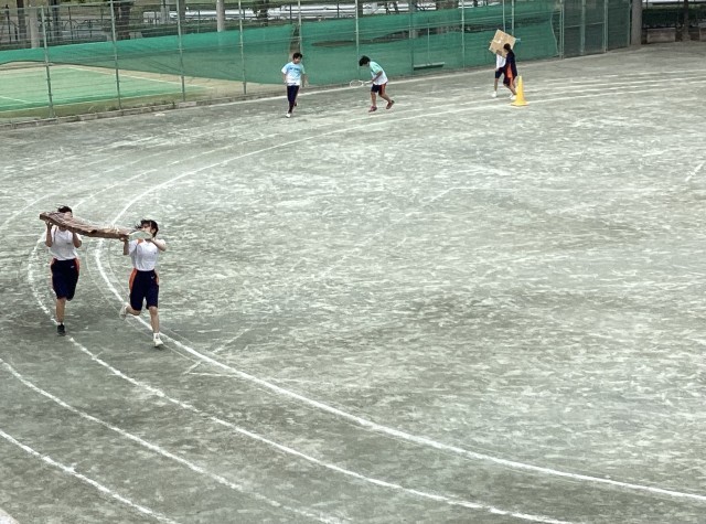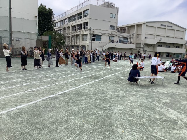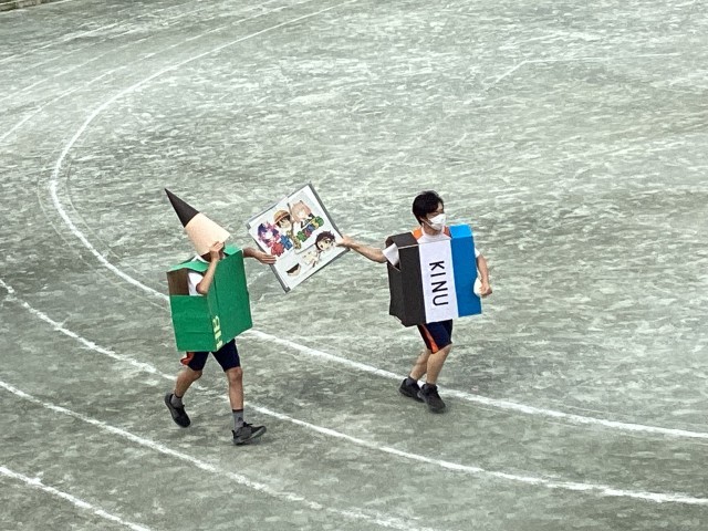 6月6日に生徒会主催の部活動リレーを行いました。スピード部門(男子・女子)とパフォーマンス部門の3レース。スピード部門は運動部の選手達が速さを競いました。パフォーマンス部門では、各部活の特徴をアピールする道具を用意して走りました。
