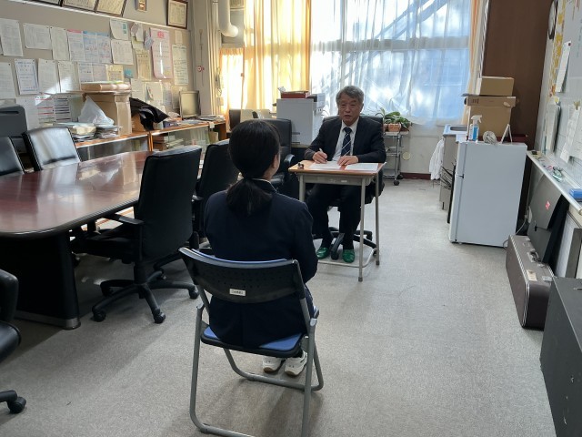 入試に向けて、3年生は校長先生・副校長先生などに面接練習をしていただいています。1月も放課後に行います。