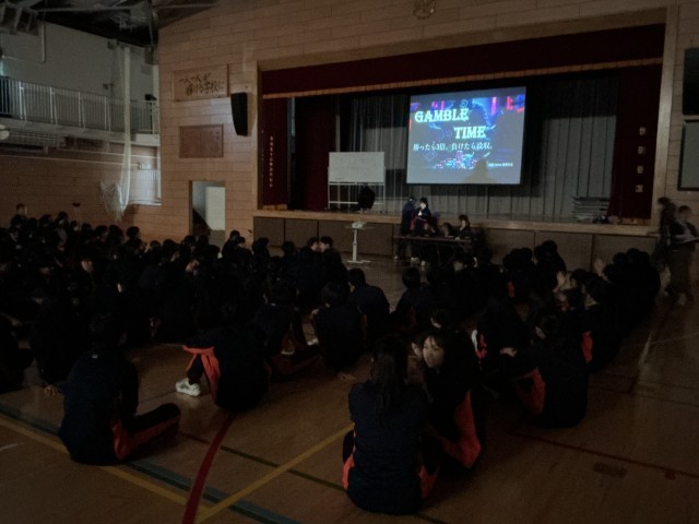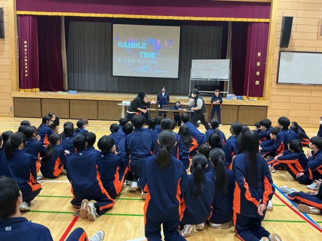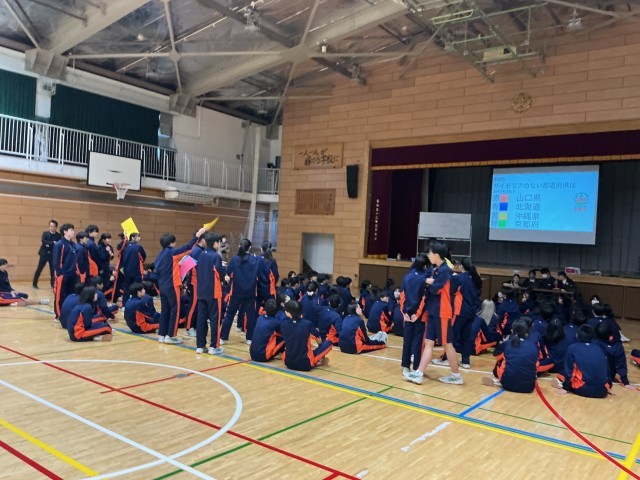 今回はC組企画のレクでした。じゃんけん・クイズ・マーニ拾いなどをクラスで協力しあいました。担任の先生も参加し、おおいに盛り上がりました。
