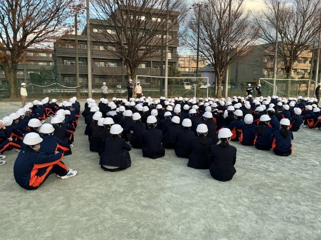 今回の避難訓練は、地震を想定した訓練でした。初めてヘルメットの装着をしての校庭避難だったため、いつもより点呼終了まで時間がかかりました。折りたたみヘルメットの装着の練習をしっかりしていきましょう。