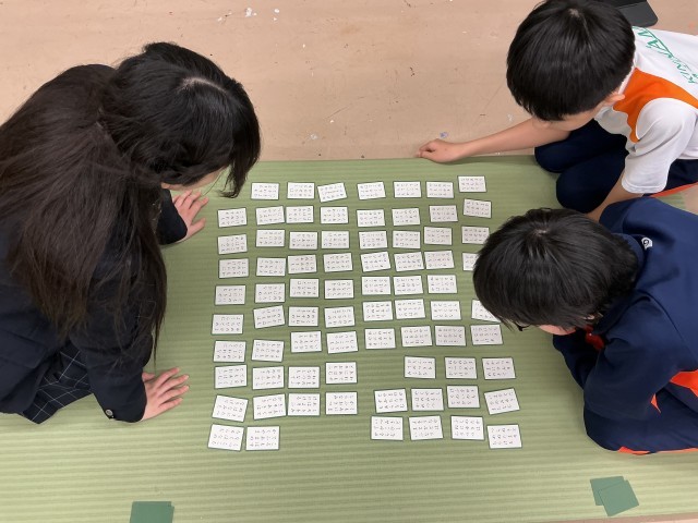 国語の授業で百人一首を行いました。「ちはやふる〜」の和歌が1番人気で、上の句で取る人が多数いました。