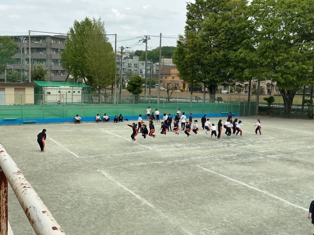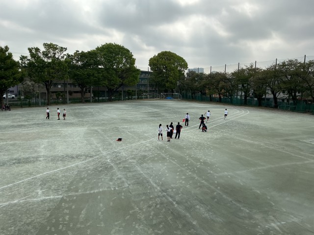 校庭では大縄跳びの練習と短距離走のタイム計測が行われていました。