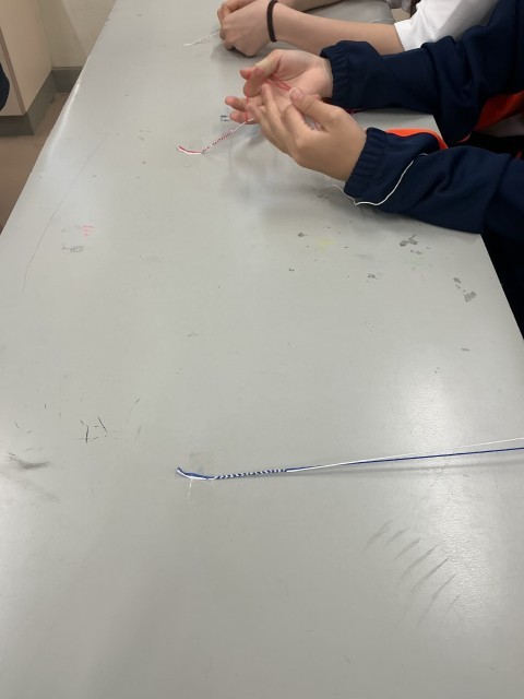 家庭科部ではミサンガ作りを体験しています。一年生が大勢体験に参加しました。