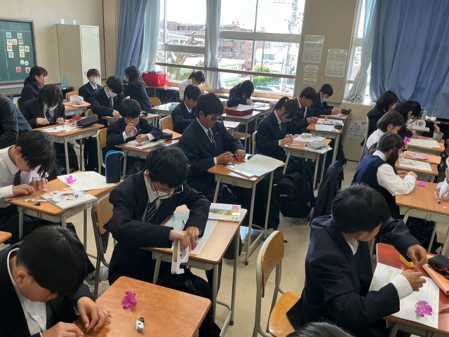 今年度、最後の学年集会を行いました。各学級委員がクラスの振り返り内容を発表しました。その後、教員から話をして3年間を振り返る画像を見ました。素敵なひとときを過ごしました。