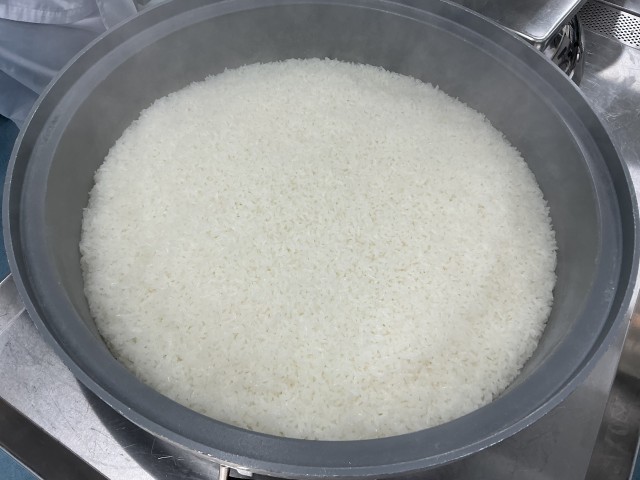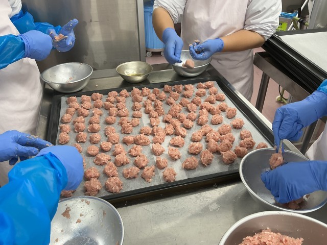 今日のしゅうまいは学年閉鎖になった1年生の分の材料をキャンセルできなかったので、肉だねを1人1.5倍の量に分割し、しゅうまいの皮を短冊に切って肉だねを包んだ花しゅうまいにしました。とても大きなしゅうまいになりましたが、残はほとんどなくみんなよく食べてくれていました。