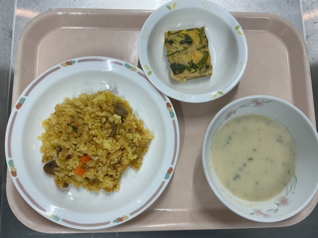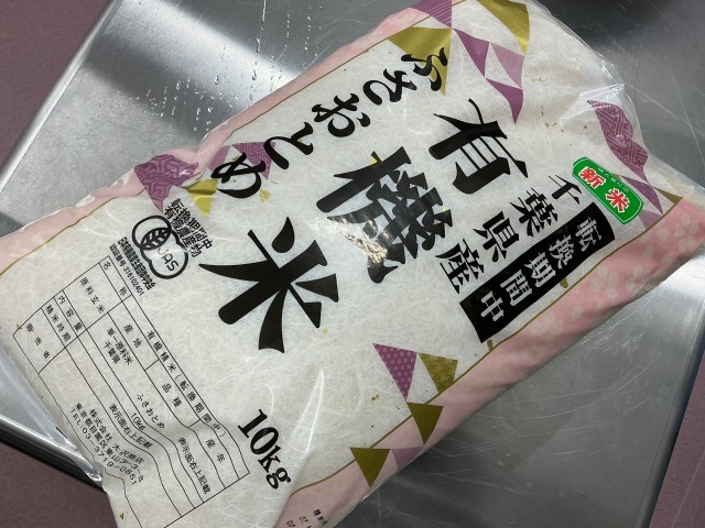 今日は有機米給食の献立です。有機米は千葉県産のふさおとめの新米です。有機魔は農薬や化学肥料を使わずに育てられているため、自然の栄養素が含まれている安全・安心なお米です。生産者の方に感謝の気持ちを持っていただきましょう。