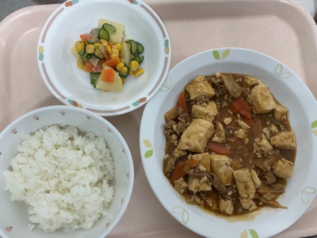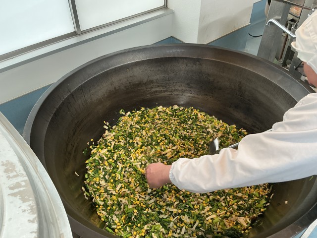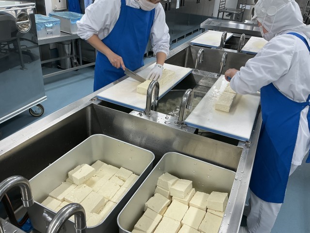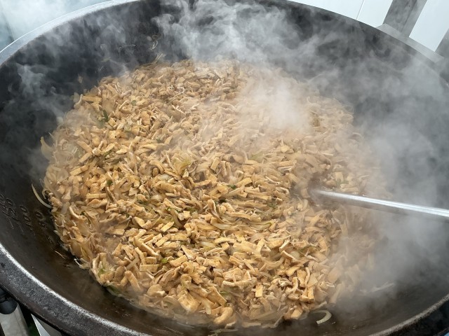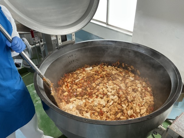 四川豆腐は中国の四川省を代表する豆腐料理で、麻婆豆腐の四川風というところです。全校で70kgもの豆腐を使って作ります。