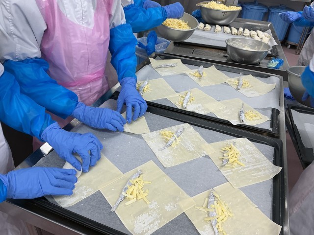 ししゃもの包み揚げは、ししゃもとチーズを春巻きの皮で包んで油で揚げて作りました。ししゃもが苦手な人も、パリパリとした食感でおいしく食べられたのではないかとおもいます。