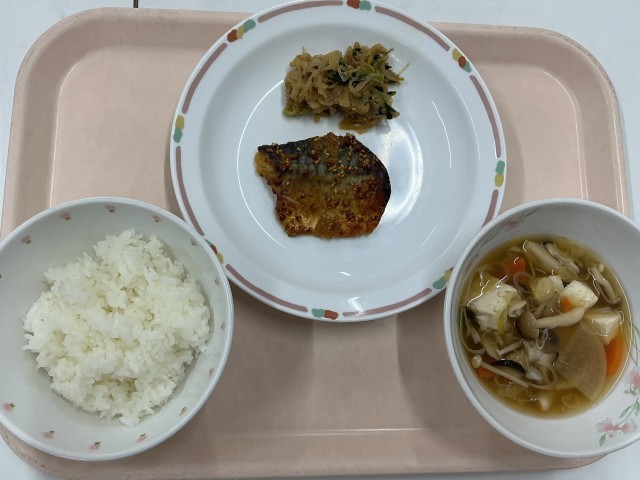 さばの麦味噌焼きは、大麦とみそ、砂糖、酒、みりん、しょうゆ、ごまを混ぜてさばを漬け込みオーブンで焼きました。しっかりとしたみそ味と麦のプチプチとした食感でごはんが進んだようで、どこのクラスもごはんの残食は少なかったです。