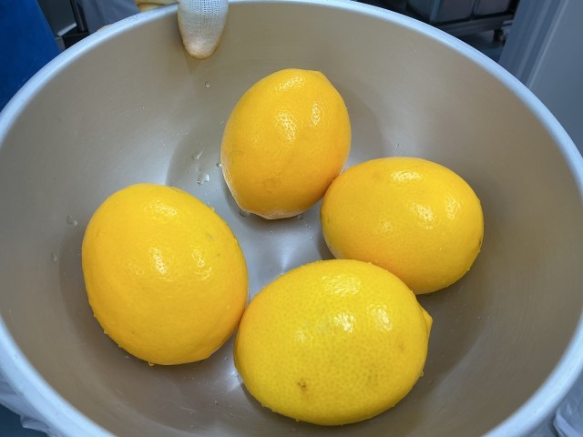 レモンシュガートーストは、レモンの汁と皮をすりおろしたものを砂糖とバターと混ぜてペーストにし、パンに塗って焼きました。使用したレモンは八丈島のフルーツレモンです。市販のレモンよりも大きく、甘みがあり皮の苦味が少ないので皮ごと食べることができます。