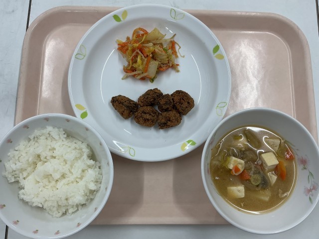 明日は節分です。節分といえば「豆まき」「恵方巻き」がよく知られていますが、一部の地域ではいわしを食べる風習があります。明日は1年生が郊外学習のため、1日早いですが節分にちなんでいわしと大豆を使った献立にしました。