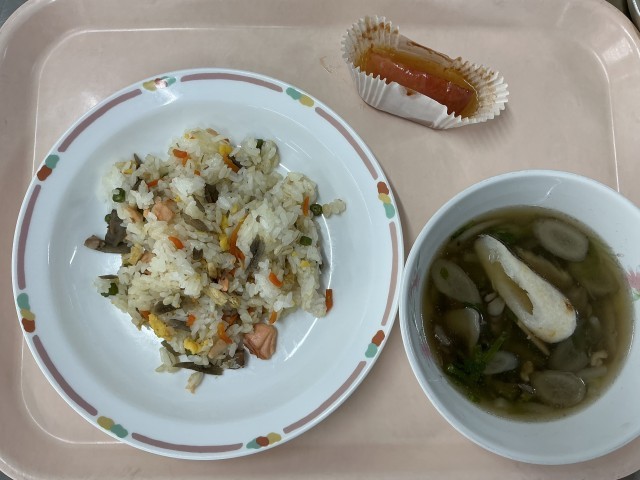 給食週間4日目は東北地方の郷土料理です。わっぱめしは福島県の郷土料理、きりたんぽは秋田県を代表する郷土料理です。そして、東北は日本一のりんごの産地なので、りんごを使ったデザート、焼きりんごの献立にしました。