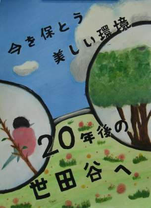 世田谷区政80周年記念ポスター原案に応募した本校生徒の作品が