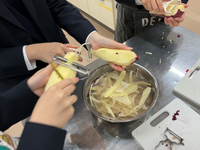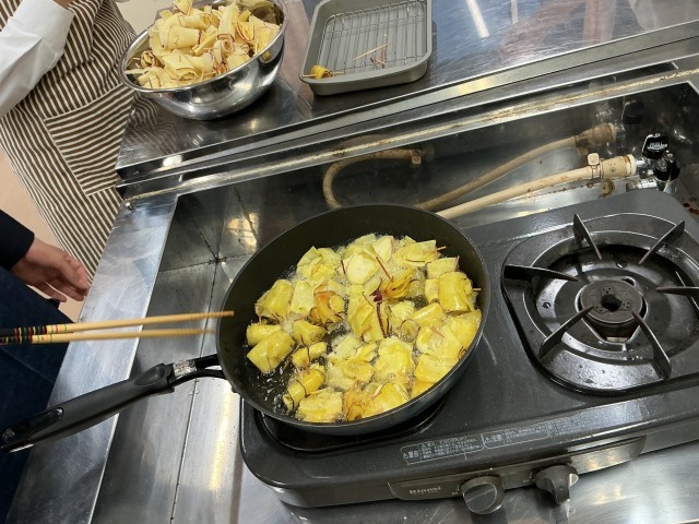 家庭部では、おしゃれ大学芋とさつまいもチップスを作りました。いい香りが廊下にも漂っていました。