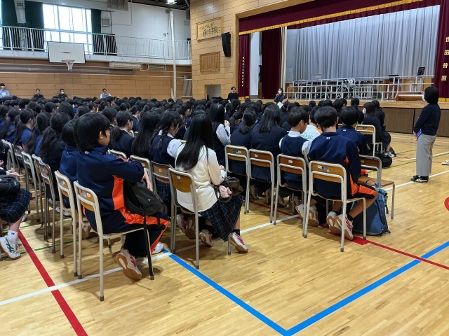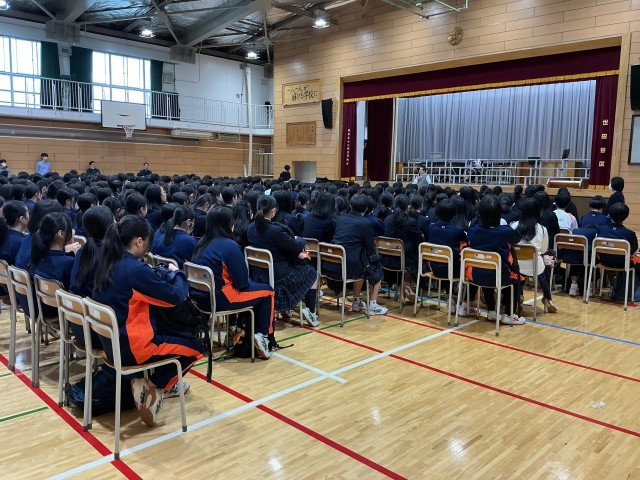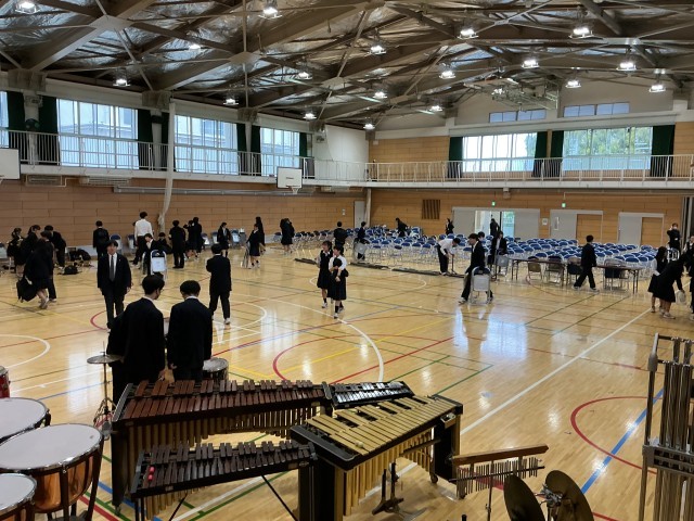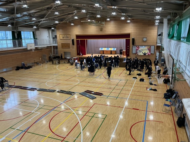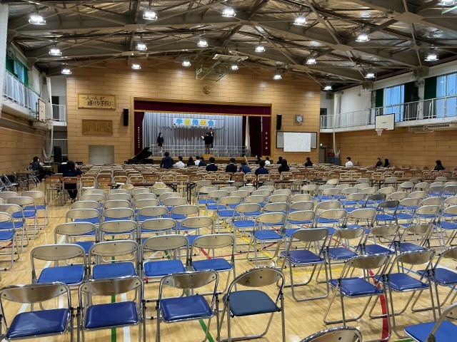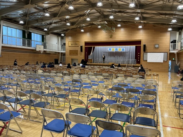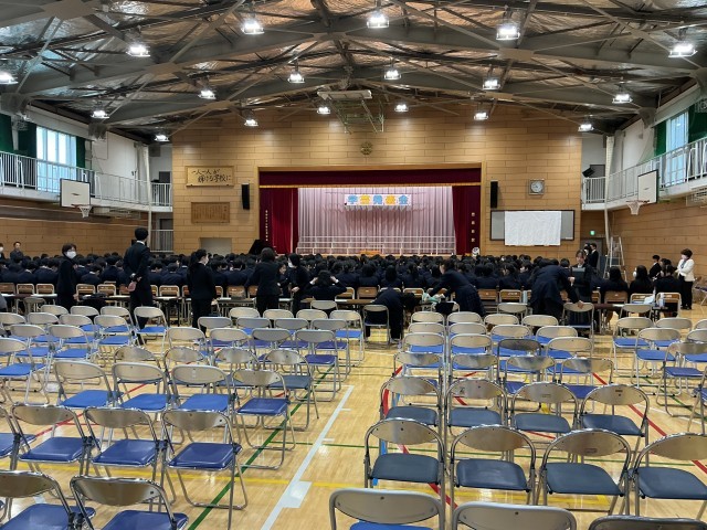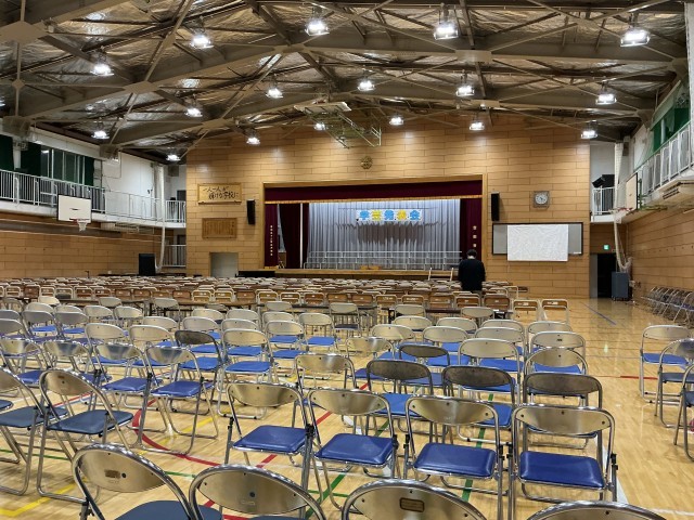 生徒達は下校前に椅子を体育館に運びました。明日はお弁当持参です。寒くなると思うので、暖かいインナーや防寒着も着てきましょう。