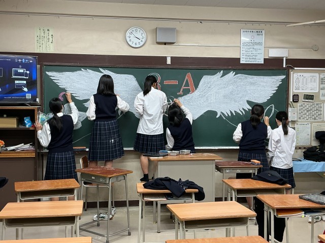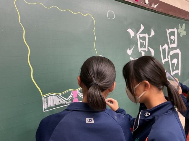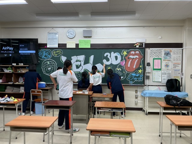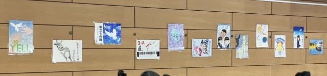 実行委員長の話の中で、美術部の作ったスローガンの横断幕披露がありました。また、各学級の自由曲「イメージポスター」も素敵に仕上がっています。