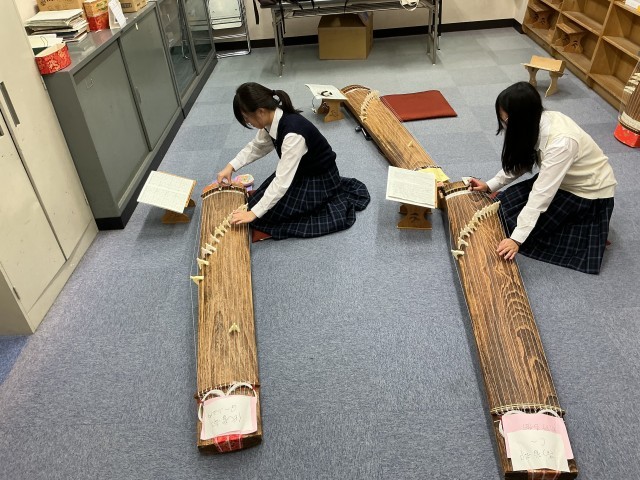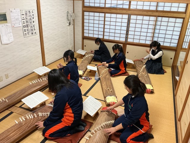 吹奏楽部や箏曲部では練習に取り組んでいます。