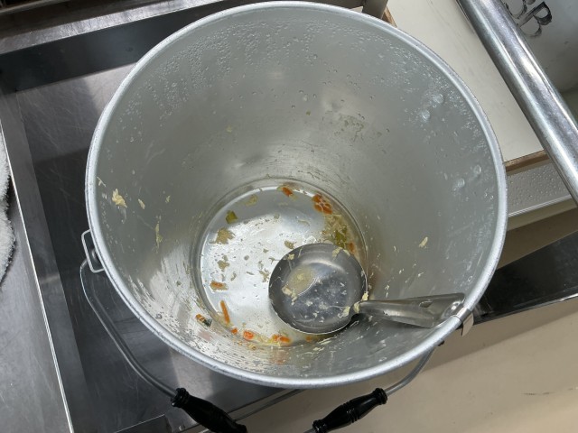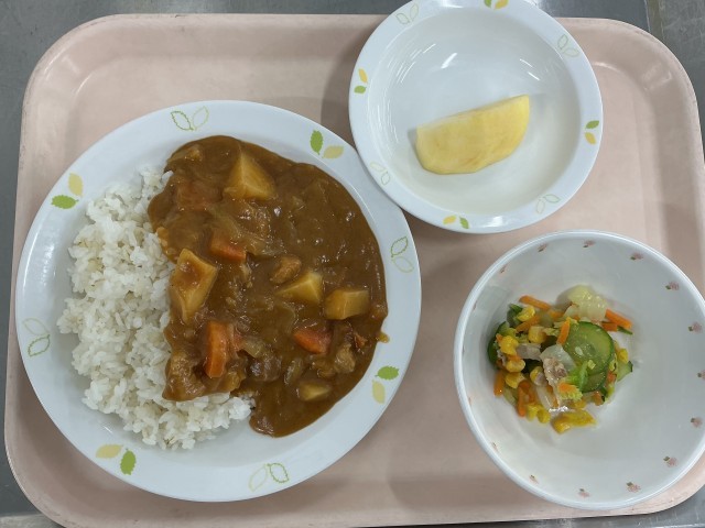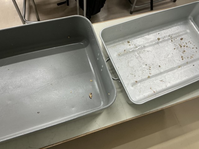 給食のカレーはカレールウから手作りで、油と小麦粉をじっくり炒めて作ります。そして、カレー粉だけでなく、ガラムマサラやクミンなどのスパイスも使って香り高く仕上げています。どのクラスも、とてもよく食べていました。