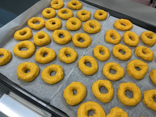 今日はハロウィンなのでかぼちゃドーナツを作りました。生のかぼちゃを蒸してペーストにしてから生地に練り込み、ひとつずつ輪を作っていき油で揚げた手作りドーナツです。みんなよく食べていました。