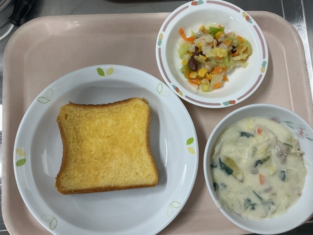 今日のごはんは有機米です。おかずは揚げたさばに大根おろしのタレをかけたさばのおろしかけです。白いごはんがよく進む味付けで、どのクラスもごはんはほとんど残っていなかったです。
