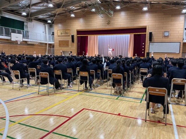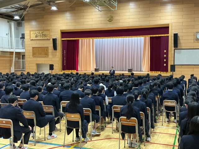 学年集会で、今後の進路についての話をしました。「受験は団体戦。みんなで良い卒業式を迎えられるように、最後まで進学に向けて協力し合い良い雰囲気作りをしていこう」という話がありました。
