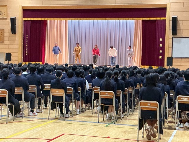 11月20日に、東京都 都民安全総合対策本部 治安対策課の方々がいらっしゃいました。演劇を通して「若者が犯罪に巻き込まれないために」「犯罪の被害者にも加害者にもならないために」をテーマに、若者を利用する犯罪者集団の悪質性や危険性を伝え、行動に注意を呼びかけました。