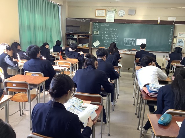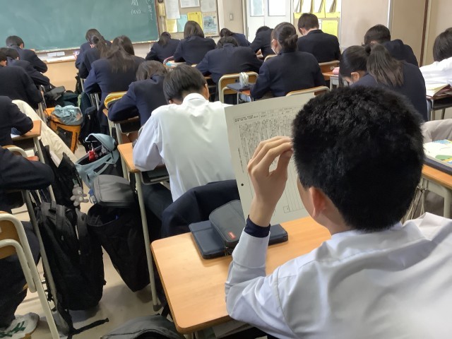 本日は、数学・音楽・美術の試験に取り組みました。生徒達は、登校後や休み時間に教科書などの見直しをしていました。