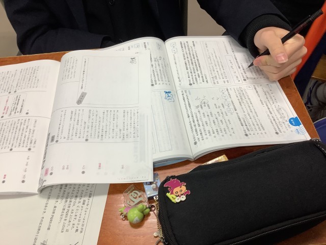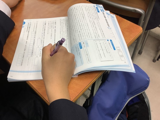 3年生は、休み時間も受験に向けて問題集に取り組んでいる生徒がいます。また、ナンプレをしている生徒もいます。