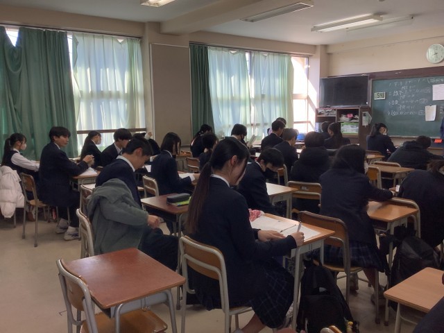 本日は、国語・理科・保健体育の3教科です。登校後、すぐに最後の見直しをしている生徒が多くいました。今までの成果を出せるよう、応援しています。