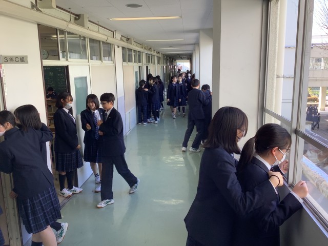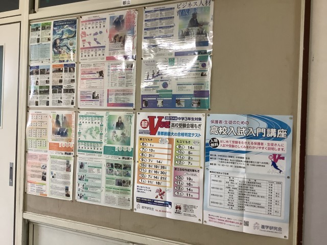 また、廊下の壁には高校や学校説明会に関するポスターが貼ってあります。