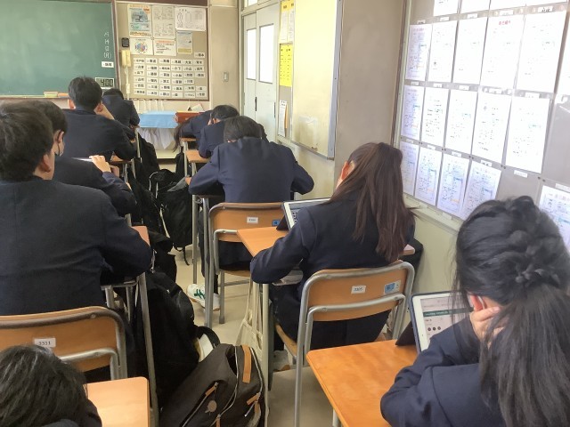 中間考査2週間前となったので、テスト範囲表と学習計画表が配られました。しっかり計画を立てて学習に取り組みましょう。