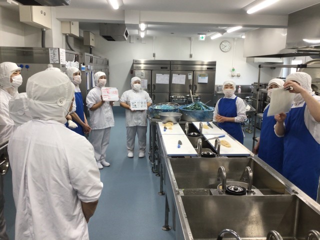 砧南中学校の給食は、これまで喜多見中学校で調理した給食が配送されていましたが、学校と同じ敷地内に給食室が新設され、4月14日から自校調理方式の給食がスタートしました。ピカピカの真新しい給食室で、総勢10名の調理員で力を合わせて美味しい給食を届けていきますのでどうぞよろしくお願いいたします。