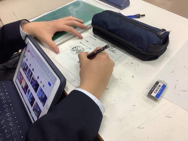 部員紹介の紙を書いたり、体育祭のスローガンポスターの図案を考えたりしていました。