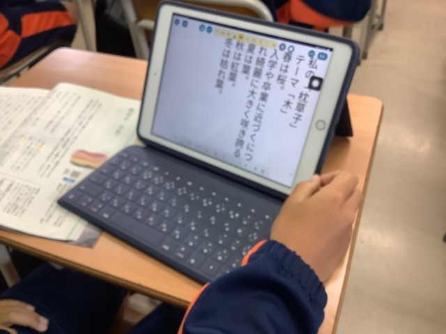 2年国語では、「枕草子」を学んだ後に「私の枕草子」を作成しています。第一段を自分でテーマを決めて考えています。
