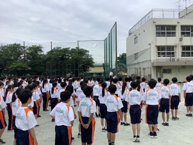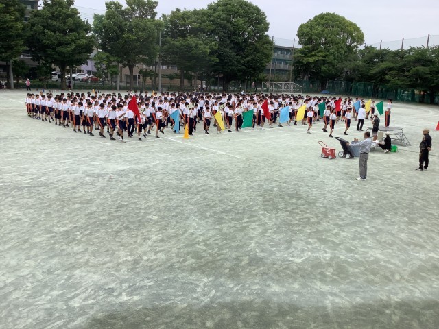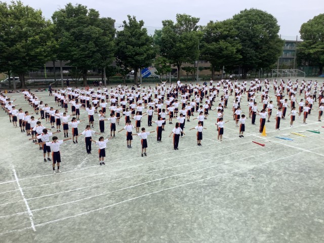 5月23日は5時間目に全校練習を行いました。3年生達は素早く準備して、1時20分の予鈴には整列を終えていました。その後の練習も1・2年生の良い手本となる行動ができていました。