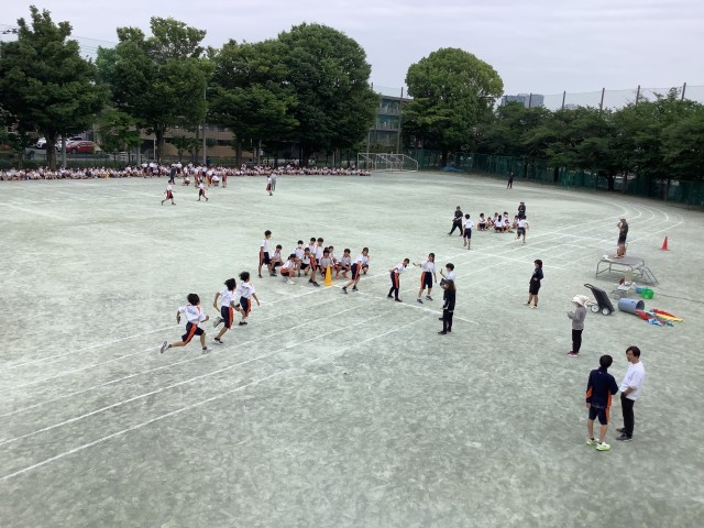 開会式、学級対抗リレー、大縄の練習などに取り組みました。リレーのタイムや、大縄で跳べる回数など、練習の成果が出ています。