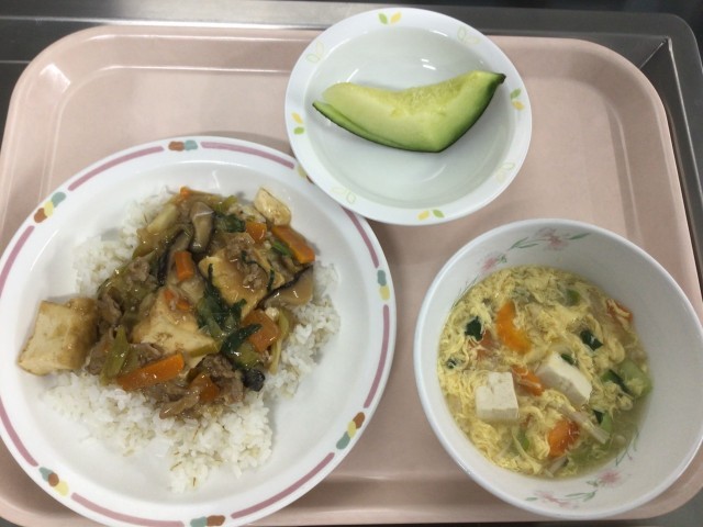 体育祭前日なので、気合いが入るようにという気持ちをこめて、カツカレーの献立です。天候が不安定なので明日の開催は微妙ですが、体育祭頑張ってください!