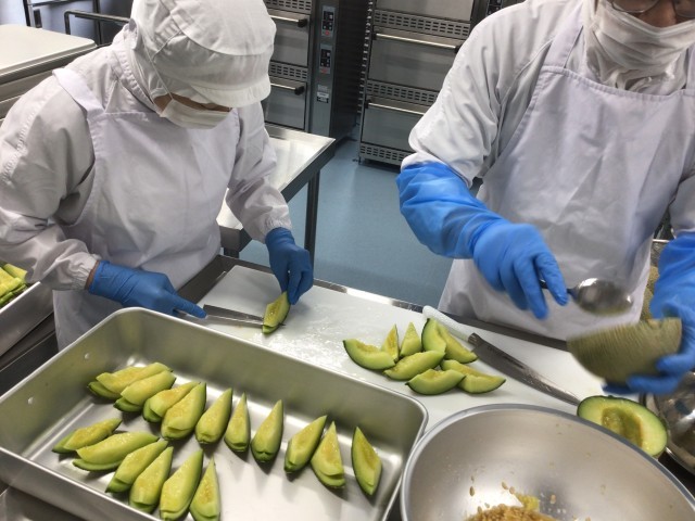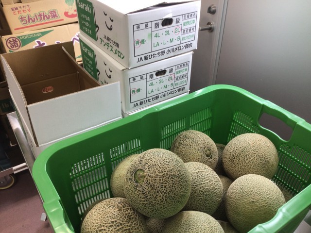 今日のデザートはメロンです。日本では、北海道や茨城などで多く作られています。今日のメロンは茨城県産でした。