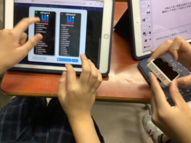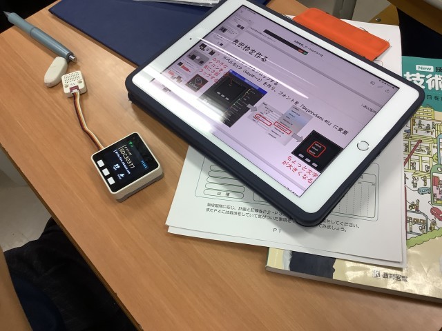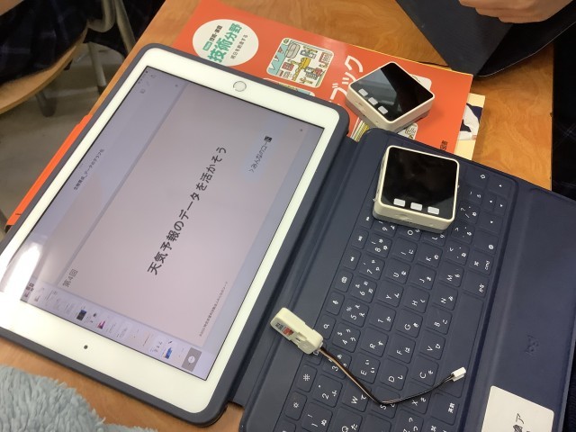 2年の技術科の授業では、計測制御の装置を使用して、データをグラフ化しています。