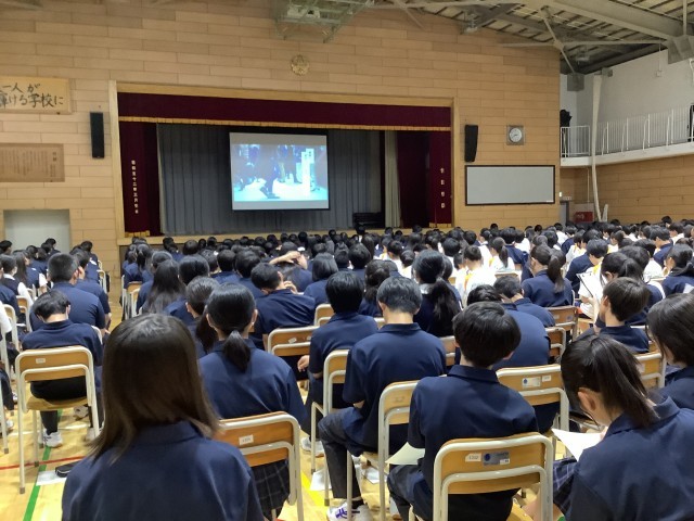 6月20日(金)に、全校生徒に向けて「薬物乱用防止教室」を行いました。タバコや薬物などが精神と身体にどのような害をもたらすかということを学びました。生徒達はワークシートにメモをしながら、動画を見て、専門家の話を聞きました。これからも薬物に手を出さず、安心・安全な生活を送りましょう。