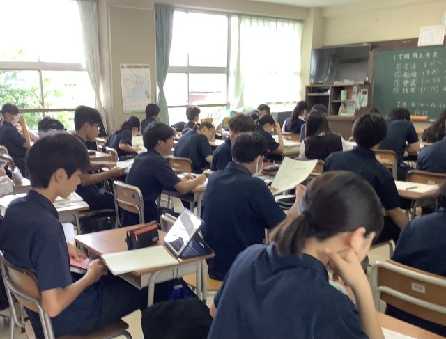 おはようございます。本日は期末考査初日です。英語・国語・保健体育の3教科あります。日頃の成果を出せるよう応援しています。