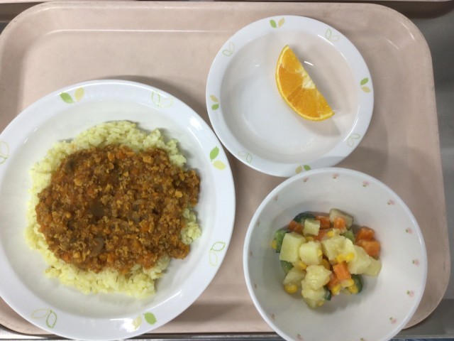 世田谷区では、環境負荷低減や持続可能な食糧生産促進等のため、学期に1回有機野菜を活用した給食を提供します。有機野菜は通常の野菜と比べると化学物質の影響を受けていないので、安全でしかも味が濃厚でおいしいのが特徴です。今日のサラダに使っているじゃがいもとにんじんが有機野菜です。有機野菜のおいしさが感じられたでしょうか。