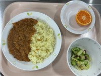 献立・キーマカレーライス・さつまいものサラダ・はれひめ・牛乳今日の果物は、「はれひめ」という静岡生まれの柑橘です。酸味が少なめで甘く、オレンジのような風味があるのが特徴です。はれひめという名前は、夏と...