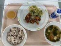 献立・赤飯・鶏のからあげ・野菜のごまドレッシング・お祝いすまし汁・プリン・ジョア3年生は今日が最後の給食なので、卒業のお祝い献立です。お祝いの食べ物といえば「お赤飯」です。昔から赤い色には悪いものを取...