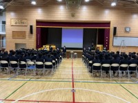 今年度、最後の学年集会を行いました。各学級委員がクラスの振り返り内容を発表しました。その後、教員から話をして3年間を振り返る画像を見ました。素敵なひとときを過ごしました。