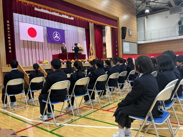 4月7日に砧南中学校の第50回入学式が行われました。今年度の新入生は162名、5クラスでスタートします。教室の黒板には先輩からのメッセージが書かれていました。