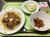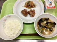 【 メ ニ ュ ー 】・わかめご飯・さくさくつくね・華風もやし・呉汁【 産 地 】米:山形(庄内産つや姫) 生姜:高知 れんこん:茨城 豆腐:愛知・佐賀 鶏ももひき肉(つくね)・玉ねぎ・鶏もも...