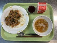 ○献立・ビビンバ・春雨スープ・ぶどうゼリー・牛乳○産地・米・庄内産つや姫 ・にん...