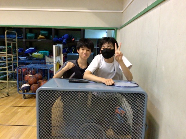 バドミントン部の3年生は今日が最後の練習日のようです。